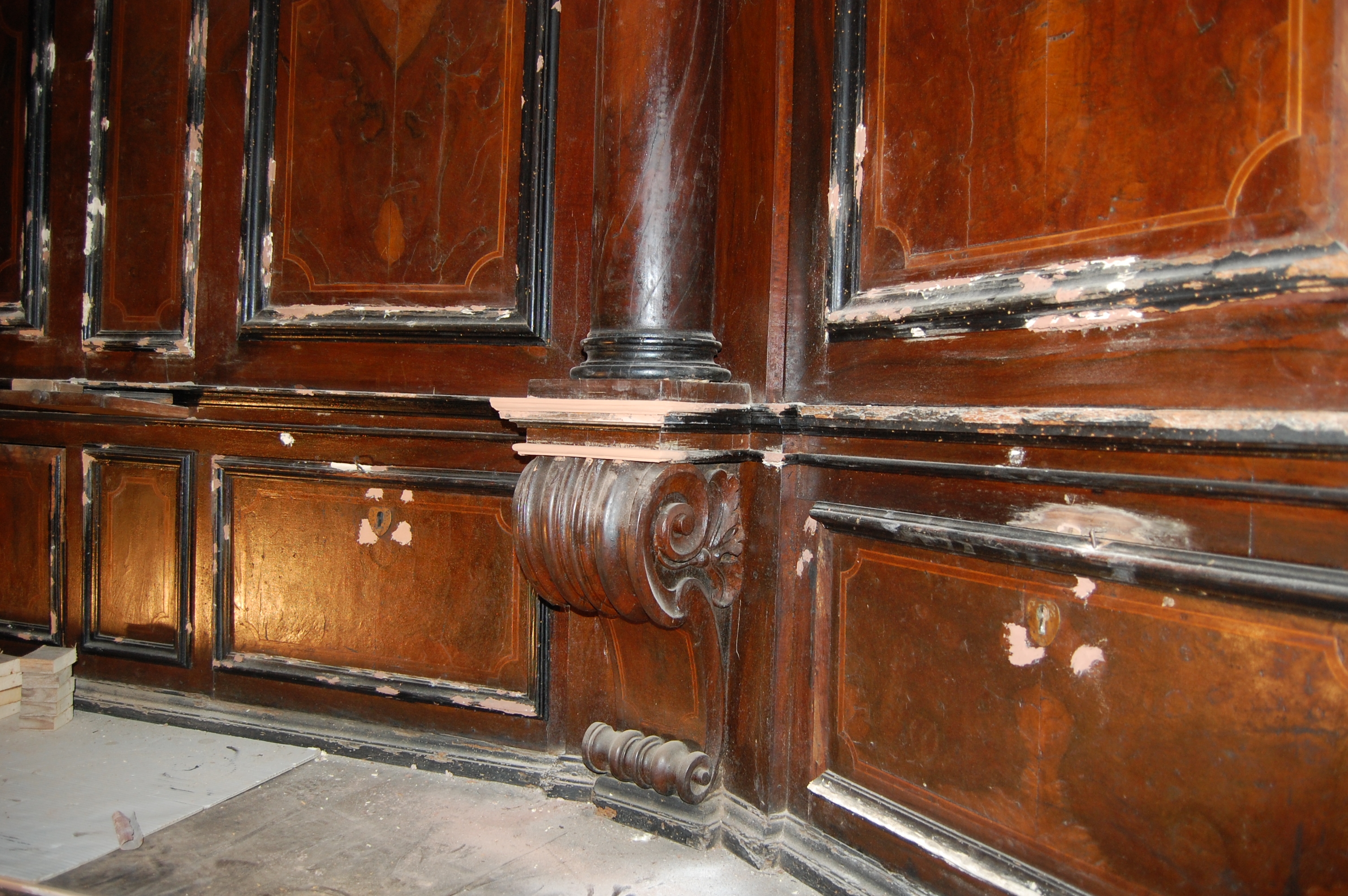 Nel luglio-agosto 2004 fu eseguito un primo intervento con la disinfestazione del coro inferiore e della sagrestia.