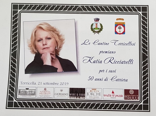 In serata si è tenuto uno spettacolo di musica, durante il quale il soprano si è esibita sul palco insieme a giovani dilettanti della musica lirica, accompagnati dall’esibizione di ballo dei ragazzi della Peluso Dance Academy. Lo spettacolo ha suscitato gran successo e non sono mancati i siparietti divertenti ed ironici che caratterizzano la signora Ricciarelli, donna molto simpatica e di grande umiltà. La serata si è conclusa con la consegna dei premi per i suoi 50 anni di carriera di Katia. Due premi che ha apprezzato tantissimo: il primo consegnato dalle cantine di Torricella e il secondo consegnato dal consigliere regionale Giuseppe Turco.