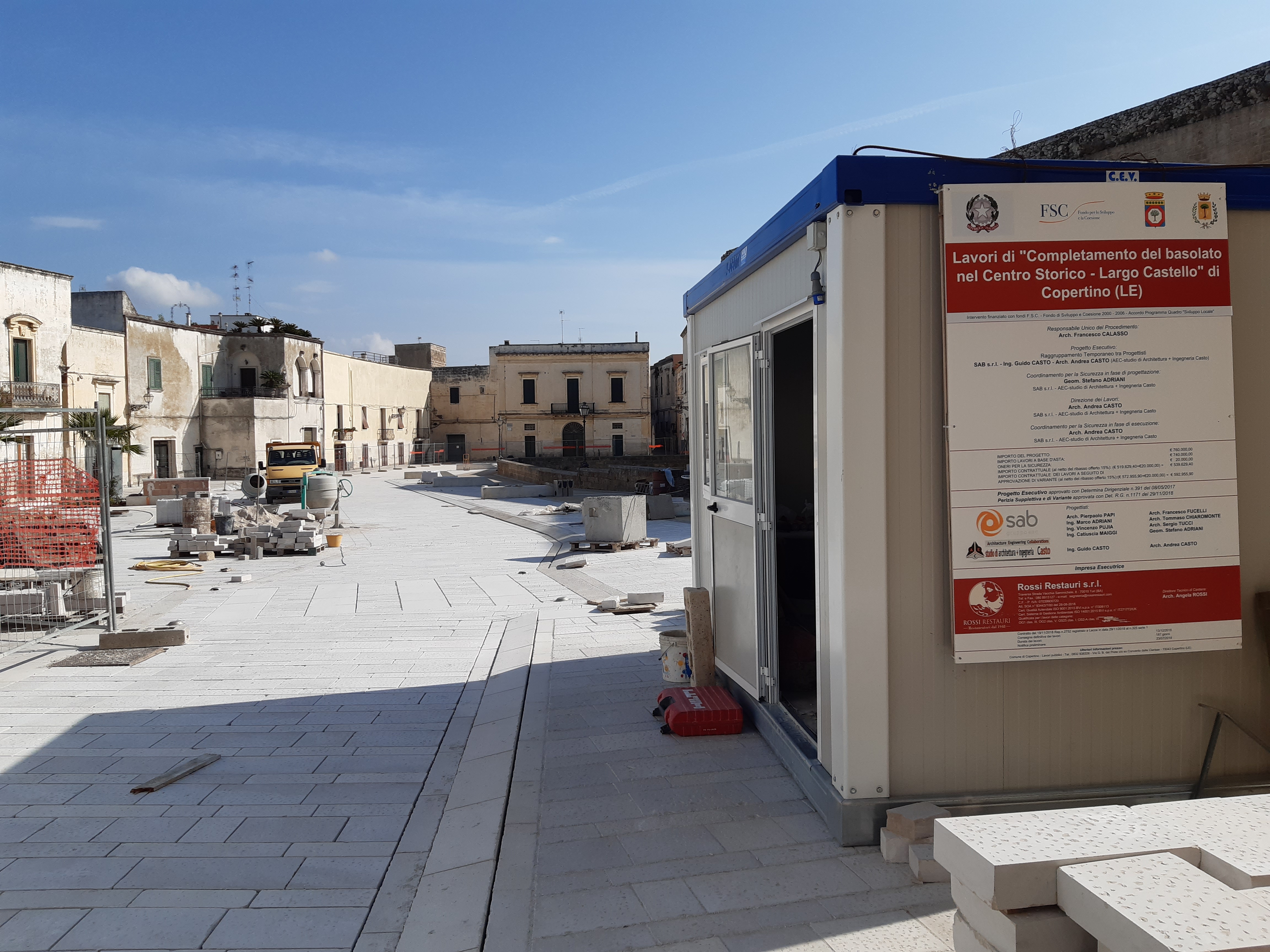 «Copertino aveva bisogno di un salotto di pietra, appaiato sotto il suo imponente Castello, ma anche di uno spazio da vivere e condividere - ha aggiunto il progettista dell’opera, l’architetto Andrea Casto. «Con questo obiettivo abbiamo dato una veste rinnovata alla piazza, attraverso un basolato dalla linea contemporanea, che da risalto al monumentale maniero.