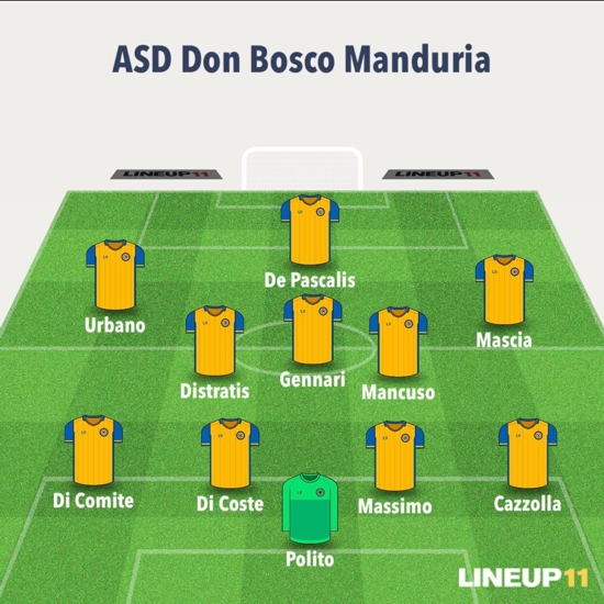 DON BOSCO MANDURIA: Polito, Cazzolla (s.t. 23’ Marzo), Di Comite; Mancuso (s.t. 17’ Margheriti), Massimo, Di Coste; Mascia, Distratis, De Pascalis, Gennari, Urbano. All.: Sportelli. A disp.: 12 Sagace, 13 My, 14 Buccolieri, 15 Alfarano, 16 Calabrese, 17 De Fazio.