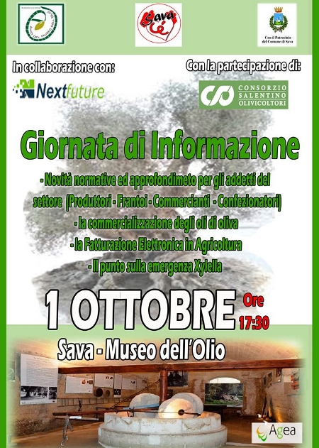 Si terrà questa sera a Sava, a partire dalle ore 17.30, presso il Museo dell’Olio, una giornata di informazione per gli addetti del settore olivicolo su iniziativa dell’associazione culturale “Sava Cè”.