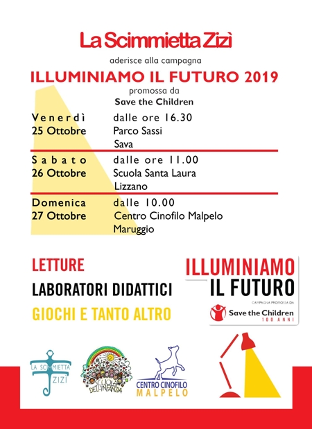 Per il terzo anno consecutivo l’associazione “La scimmietta Zizì” aderisce alla campagna “Illuminiamo il Futuro”, promossa da “Save the Children” per contrastare la povertà educativa.