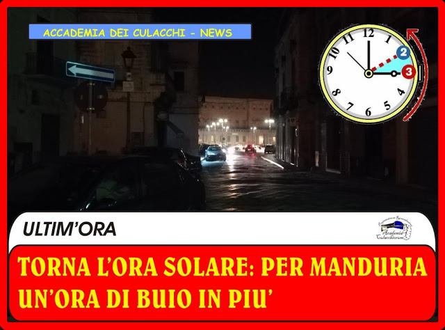 Torna l’ora solare: per Manduria … un'ora di buio in più