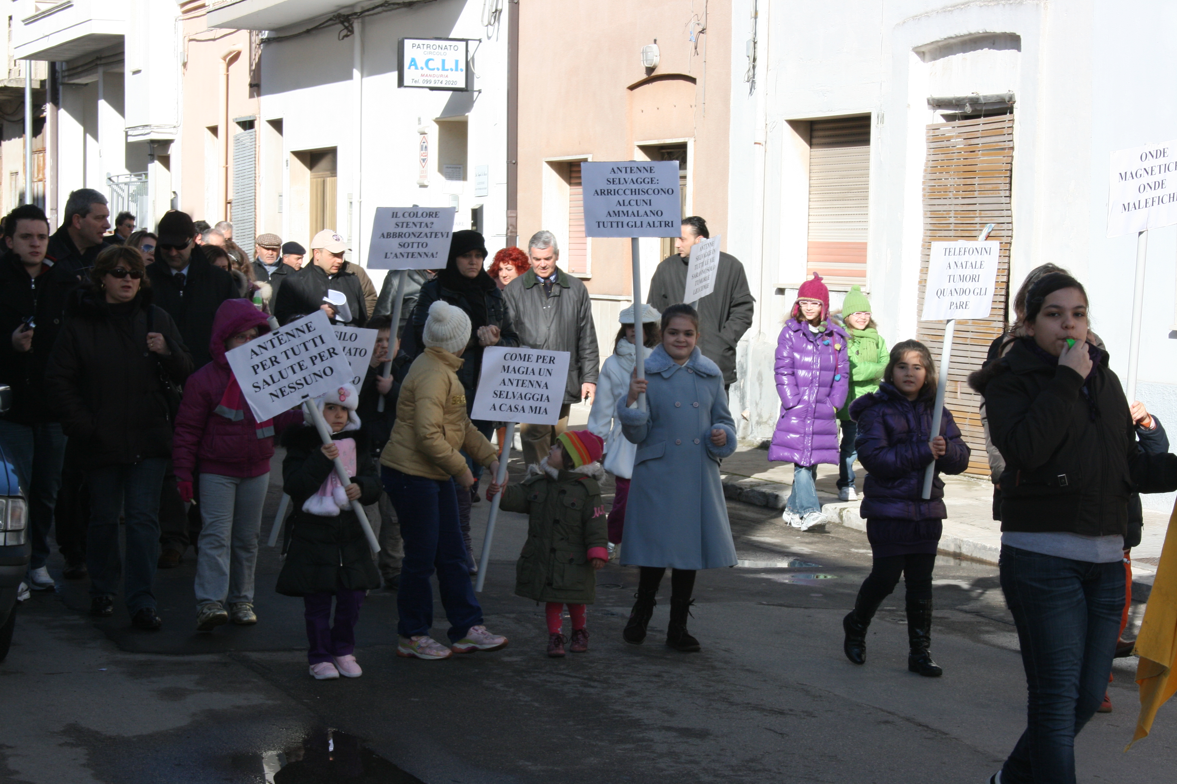Un lungo corteo, partito da via Santo Stasi, ha costeggiato il III Circolo Didattico. Una scelta che è stata anche una forma di denuncia esplicita: a circa 300 metri a linea d’area dalla struttura (che ospita una scuola materna e una scuola elementare), sta per essere attivato, sul tetto di una abitazione privata, un altro impianto di telefonia mobile.