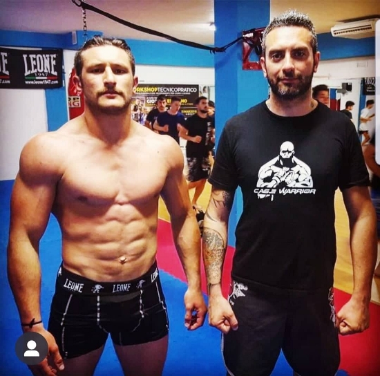 «Massimiliano si allena con me alla Centurion Club dal 2013» afferma Giulio Morgante (nella foto insieme a Massimiliano), «è stato campione italiano amateur Fight1 84 kg, oltre che titolare della nazionale per 2 volte, con un ottimo bronzo conquistato ai mondiali del 2015 di San Pietroburgo.