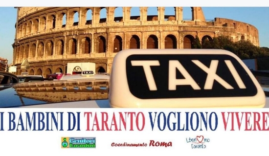 «Quasi cento tassisti romani hanno raccolto l’invito del loro collega Roberto Vici mostrando grande sensibilità e volontà di supportare le famiglie tarantine vittime della grave ingiustizia che sta colpendo la città jonica. Un banner con la scritta “I BAMBINI DI TARANTO VOGLIONO VIVERE” sarà il messaggio che girerà, grazie ai taxi, in tutta la città di Roma.