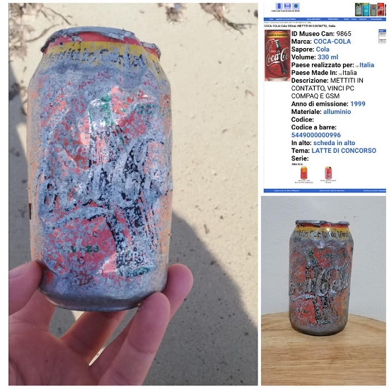 Concorso che Coca Cola nel 1999 ha pubblicizzato in Italia... Questa lattina è stata in mare per 20 anni e nel 2019 ha deciso di restituirci il souvenir dell'estate che fu...
