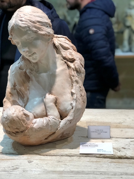 Le opere in concorso sono collocate in un percorso immersivo che si apre attraverso le gigantografie dei bozzetti preparatori del presepe monumentale per giungere all’opera, collocata al termine della sala e inserita in una suggestiva quinta scenografica.