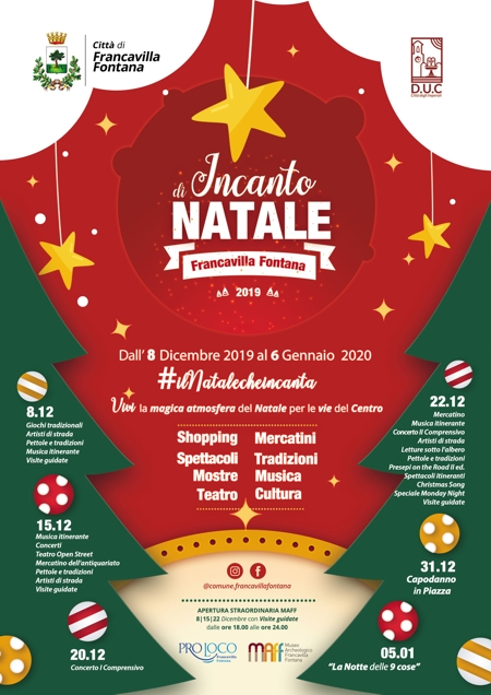 Incanto di Natale è una iniziativa del Comune di Francavilla Fontana realizzata in collaborazione con il DUC Città degli Imperiali, la Pro Loco ed il Maff.