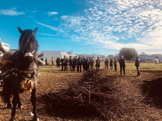 I costruttori della maestosa pila, abbagliati dai raggi del sole, esprimono la devozione della comunità al santo patrono e la volontà di preservare il simbolo della terra del negroamaro che brucerà il 16 gennaio. Il falò è formato da fascine di tralci di vite (sarmente) recuperate dalla rimonda dei vigneti. Vengono accatastate con tecniche tramandate da padre in figlio. In media, per costruire un falò di tali dimensioni, occorrono dalle 90mila alle 100mila fascine. Sulla cima la mattina della vigilia, viene issata l’icona di Sant’Antonio che brucerà insieme al falò.