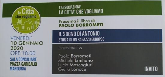 Il giornalista antimafia Paolo Borrometi questa sera a Manduria per presentare il suo ultimo libro “Il sogno di Antonio – Storia di un ragazzo europeo”.