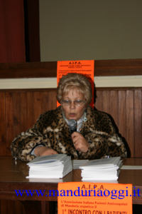 libererebbe gli utenti dalla schiavitù della dipendenza del test in ospedale ogni settimana».L’incontro è stato moderato da Michele Scarciglia. Ha introdotto i lavori la presidente A.I.P.A. di Manduria, Anna Maria Di Giacomo. Erano presenti anche la dott.ssa Lucia Scarciglia, che affianca il dott. Di Punzio nella struttura complessa, e la precedente presidente dell’A.I.P.A. di Manduria, la signora Molendini, la quale ha ricevuto un omaggio floreale.