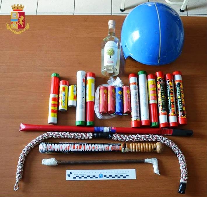 Al termine dell’incontro, prima che ripartissero, gli agenti hanno perquisito, con non poche difficoltà (trovando, fino all'ultimo, un’accesa resistenza) le auto dei tifosi campani recuperando caschi, mazze di ferro, un manganello, alcolici, otto fumogeni e petardi del genere vietato, tutti poi posti sotto sequestro.