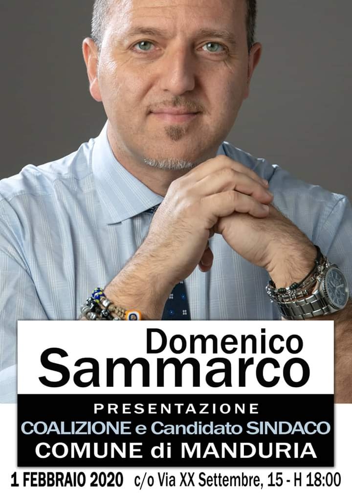 Siamo convinti che, se esiste una persona che riassume oggi tutto ciò che intendiamo rappresentare, questa persona sia l’avv. Domenico Sammarco cha tutti noi proponiamo e sosteniamo convintamente come prossimo sindaco di Manduria.