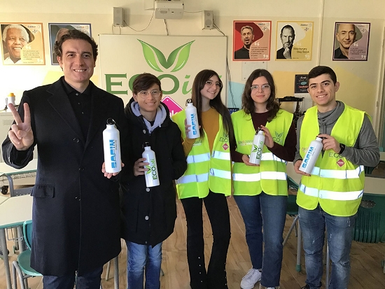 «Vogliamo eliminare l’uso delle bottigliette di plastica a scuola – hanno dichiarato i ragazzi ECOisti di Lecce – ed il nostro progetto prevede due passaggi fondamentali. Il primo era quello di dotare tutti gli studenti della nostra sede con borracce in alluminio così da utilizzarle al posto della plastica ed il secondo è quello di concordare con la scuola e con il fornitore del vending la possibilità di avere un erogatore di acqua potabile, utile per il riempimento delle borracce a costo ridotto. Il primo step è stato abbondantemente e felicemente superato grazie alla generosità del Dott. Santoro che, quando ha saputo della nostra richiesta, non ha esitato un minuto e ci ha subito fatto sapere che le borracce ci sarebbero state fornite gratuitamente dalla Safim. Ora stiamo procedendo alla soluzione del secondo step.»