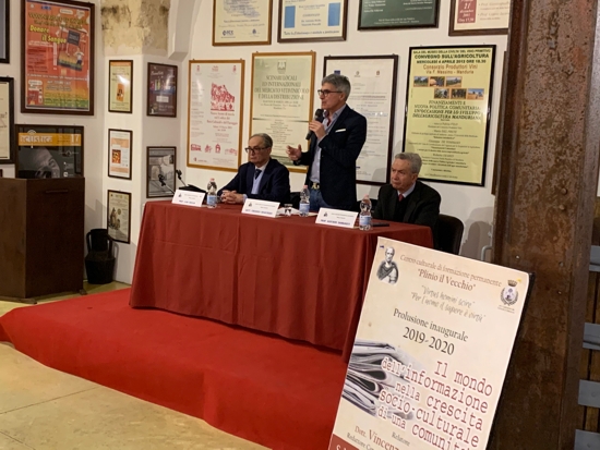 Dopo essersi soffermato sulla figura di Plinio il Vecchio (al quale il centro culturale è stato intitolato), Vincenzo Sparviero ha disquisito sul linguaggio giornalistico e sulla “webbesseria”.