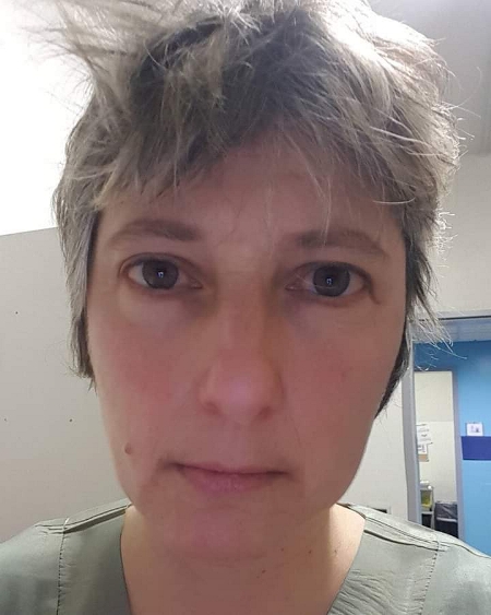Ho tolto la cuffia e la mascherina, ho i capelli in aria e puzzo di disinfettante.