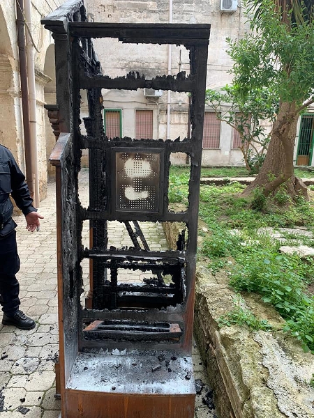 Intanto, nella giornata di ieri, così come si evince da una delle foto pubblicate nel profilo facebook di Ioannes del Sorriso, un folle ha appiccato il fuoco nella cappella dell’ospedale. Per spegnere le fiammesono intervenuti i vigili del fuoco.