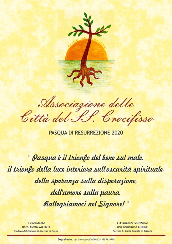 In questo periodo di emergenza sanitaria, anche l’Associazione Nazionale delle Città del SS. Crocifisso ha deciso di fare la propria parte e di concretizzare la sua presenza sul territorio, devolvendo un contributo simbolico alla Caritas Italiana, con lo scopo di sostenere i servizi essenziali dei più vulnerabili.