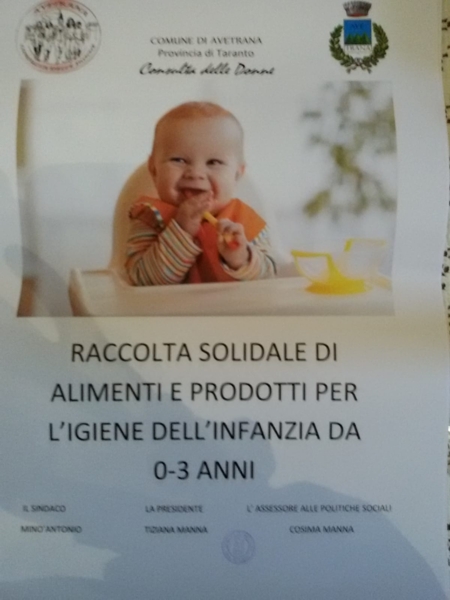 La Consulta delle Donne, in collaborazione con l’assessorato alle Politiche Sociali (di cui è titolare l’assessore Cosima Manna), organizza da domani una raccolta straordinaria e solidale di alimenti e prodotti per l’igiene dell’infanzia da 0-3 anni.