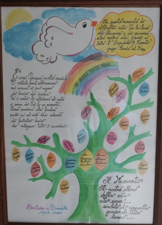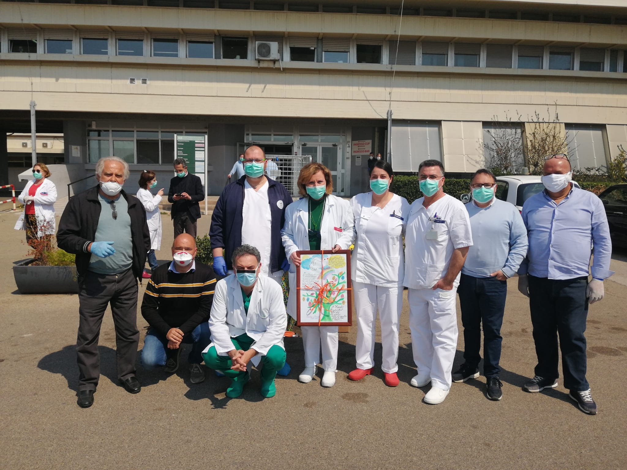 Nei giorni scorsi, alla presenza del direttore generale della Asl Stefano Rossi e del medico Massimo Soloperto, ha avuto luogo la consegna del materiale, destinato al Reparto Infettivi dell’ospedale “Moscati” di Taranto. Ai sanitari è stato donato anche un dipinto, realizzato dai figli di questo gruppo di amici, che contiene dei messaggi di speranza per il futuro prossimo. Ve lo proponiamo nella foto in basso.