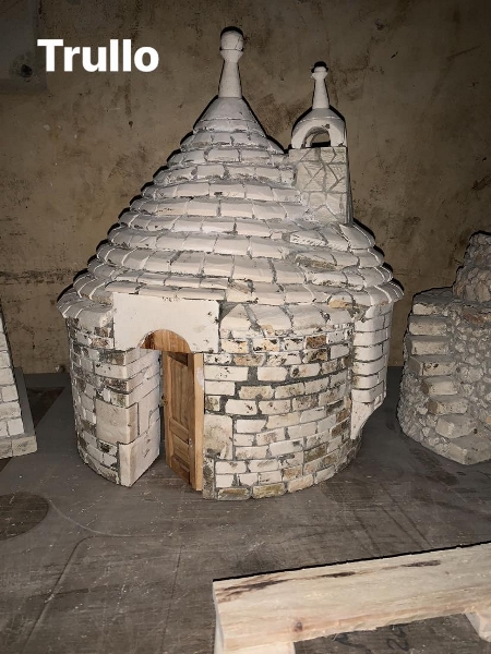 Poi, scavando nei suoi ricordi di infanzia, ha riprodotto, sempre in miniatura, alcuni simboli della civiltà contadina di un tempo, che, per fortuna, si sono tramandati: il trullo, “lu pajaru”, il pozzo, il forno a legna, il trappeto e un caseificio.