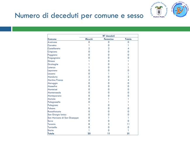 Vi proponiamo alcune tabelle del rapporto della Asl.