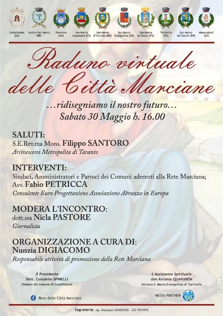 La pandemia che ha colpito il nostro Paese ha investito tra le altre attività il mondo associazionistico. Anche la realtà della Rete delle Città Marciane, ossia delle comunità legate dal culto di S. Marco Evangelista, ha dovuto sospendere la propria attività di promozione sociale e culturale, nel rispetto delle disposizioni in materia di contenimento del Covid-19.