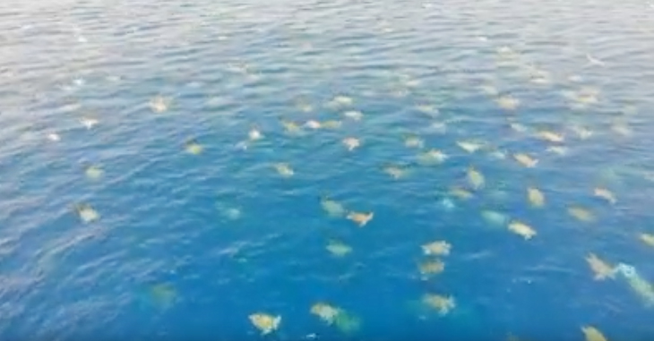 Una enorme colonia di esemplari mai vista fino ad ora è stata ripresa da un drone vicino Raine Island, in Australia