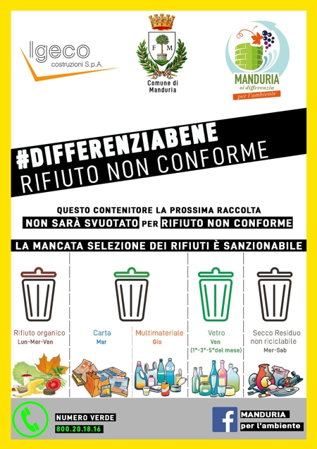 Nelle raccolte successive, se si dovessero registrare ulteriori errori di conferimento, i rifiuti non saranno ritirati