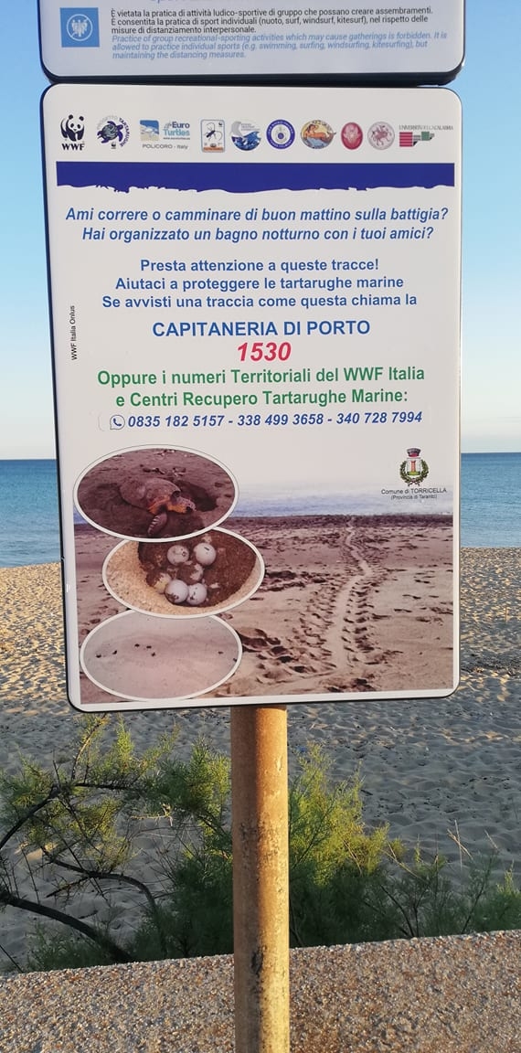 «Un ringraziamento al sindaco di Torricella Michele Schifone, che ha valorizzato la tutela del proprio territorio con l’affissione di cartelli pubblici con raffigurata la traccia di deposizione di Caretta Caretta. Grazie al suo impegno sarà più facile ricevere le segnalazioni dei cittadini. Auspichiamo che i sindaci dei comuni costieri del Golfo di Taranto prendano esempio dal sindaco Schifone, primo cittadino ad essersi impegnato concretamente nella tutela delle tartarughe marine».