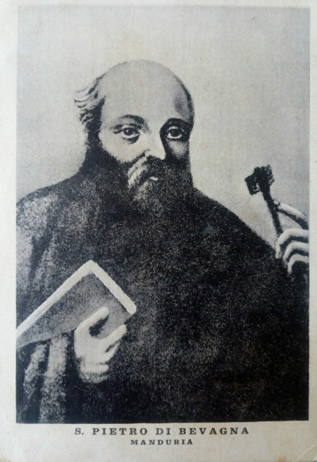 10 Cartolina devozionale riproducente la precedente tela di S.Pietro Apostolo, attribuita alla pittrice manduriana Olimpia Camerario. Collezione privata.