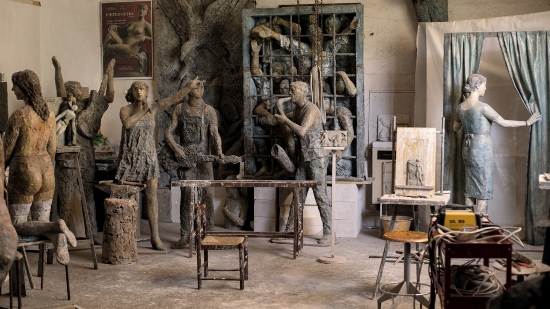 Le sculture di Pietro Guida – 99enne artista campano di nascita, residente a Manduria, in Puglia, dagli anni Cinquanta – sono state selezionate da Mariastella Margozzi e Lorenzo Madaro, curatori della mostra e raccolte nel cortile del Castello di Copertino con il coordinamento e la supervisione di Pietro Copani. Si tratta di opere realizzate in cemento nella casa-studio di Manduria, dove il maestro vive circondato da centinaia di sue opere, posizionate nelle stanze che si rincorrono tra laboratori, depositi e biblioteca e anche all’aperto, tra gli alberi e le piante del grande giardino.