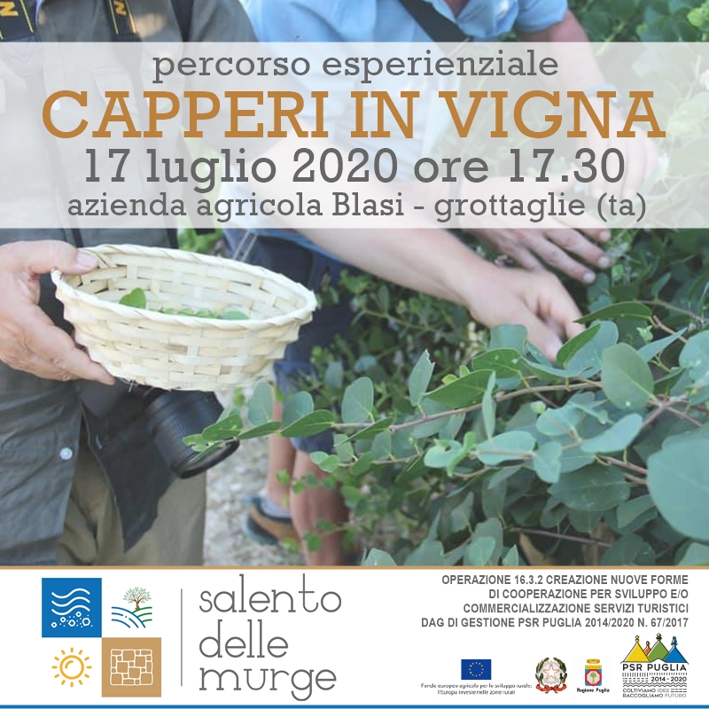 “Capperi in vigna” è il primo dei numerosi percorsi esperienziali rurali targati Salento delle Murge che si terranno ogni settimana nei mesi di luglio, agosto e settembre.