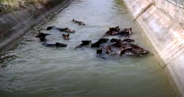 È quanto denunciano Vito Rubino e Pietro De Padova, rispettivamente direttore e presidente di CIA Agricoltori Italiani Area Due Mari (Taranto-Brindisi) che tornano, per l’ennesima volta, sull’annosa questione, dopo aver ripreso un intero branco che nuotava nel canale adduttore del consorzio di bonifica Stornara e Tara, in agro di Ginosa, in provincia di Taranto.
