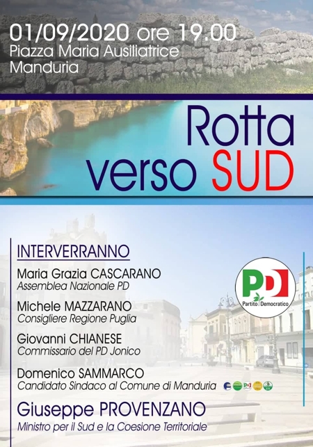 Puglia; Giovanni Chianese, commissario PD jonico; Domenico Sammarco, candidato sindaco per la coalizione progressista a Manduria; Giuseppe Provenzano, Ministro per il Sud e la Coesione Territoriale.