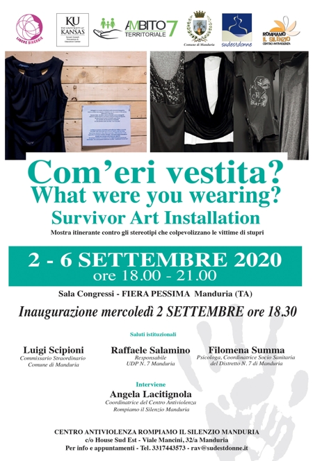 17 abiti che raccontano 17 storie di donne violate: tute, pigiami, maglioni a collo alto che riproducono quelli reali indossati al momento dell’abuso. È lungo quei fili di cotone che corre la mostra itinerante “Com’eri vestita?”, nata per destrutturare i pregiudizi che colpevolizzano le donne vittime di stupro e abusi, che approda alla Fiera Pessima di Manduria, per essere inaugurata martedì 2 settembre, alle ore 18.30.