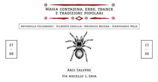 Nell’arco del pomeriggio vari esperti interverranno sul tema: Antonello Colimberti (antropologo, musicologo) con “La tradizione dell’incubatio”, una antica pratica magico-religiosa, comune a diverse culture, che consiste nel recarsi in un luogo sacro e là incubare i sogni, che poi verranno profeticamente interpretati; Gilberto Camilla (psicologo, psicanalista e presidente SISSC) con la sua relazione su “La cura della morte, riti e costumi dei morenti nella società tradizionale sarda”, incentrata sulla tradizione sarda della Accabadora, la donna che si occupava di accelerare la morte delle persone in fin di vita gravemente agonizzanti; Maurizio Nocera (già docente dell’Università di Lecce, scrittore, antropologo) con la sua relazione su “Erbe, intrugli e altro nella magica storia del Salento”, sofferma nel racconto di una serie di aneddoti scaturiti da suoi colloqui e interviste condotte nei confronti di donne e uomini salentini depositari di storie e conoscenze intorno a usanze magico-popolari; Gianfranco Mele (sociologo e studioso di tradizioni popolari) sul tema “Afrodisiaci animali e vegetali tra magia e medicina popolare”, descrivendone l’impiego nella storia e in diverse tradizioni.