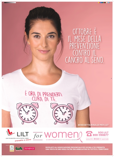 La campagna di comunicazione 2020 ha il volto della giornalista Benedetta Rinaldi, co-conduttrice della trasmissione Elisir su Rai3 e impegnata in Lilt con il ruolo di coordinatrice nazionale della Consulta Femminile. Prestando la sua immagine, la testimonial ricorda a tutte le donne che è ora di prendersi cura di sé attraverso una visita di controllo.