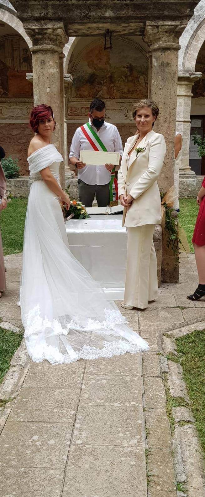 All’arrivo nel municipio Tiziana e Silvia, che hanno indossato abiti bianchi (con gonna Tiziana e con pantaloni Silvia), tanta emozione, oltre che gioia, e la consapevolezza di aver vinto la battaglia.