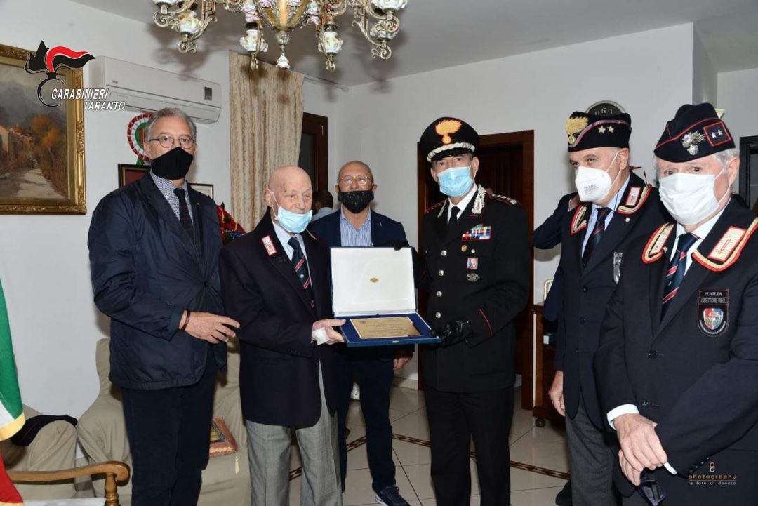 A Mottola, il signor Vincenzo MARRA, alla presenza del sindaco del luogo, Gianpiero BARULLI, del Comandante Provinciale dei Carabinieri di Taranto, Colonnello Luca STEFFENSEN, del Comandante della Compagnia CC di Massafra, del Comandante della locale Stazione CC, nonché dell’Ispettore Regionale dell’Associazione Nazionale Carabinieri, del Coordinatore Provinciale della A.N.C. di Taranto e del Presidente della A.N.C. di Mottola, ha festeggiato, all’interno della sua abitazione, un secolo di vita.