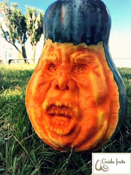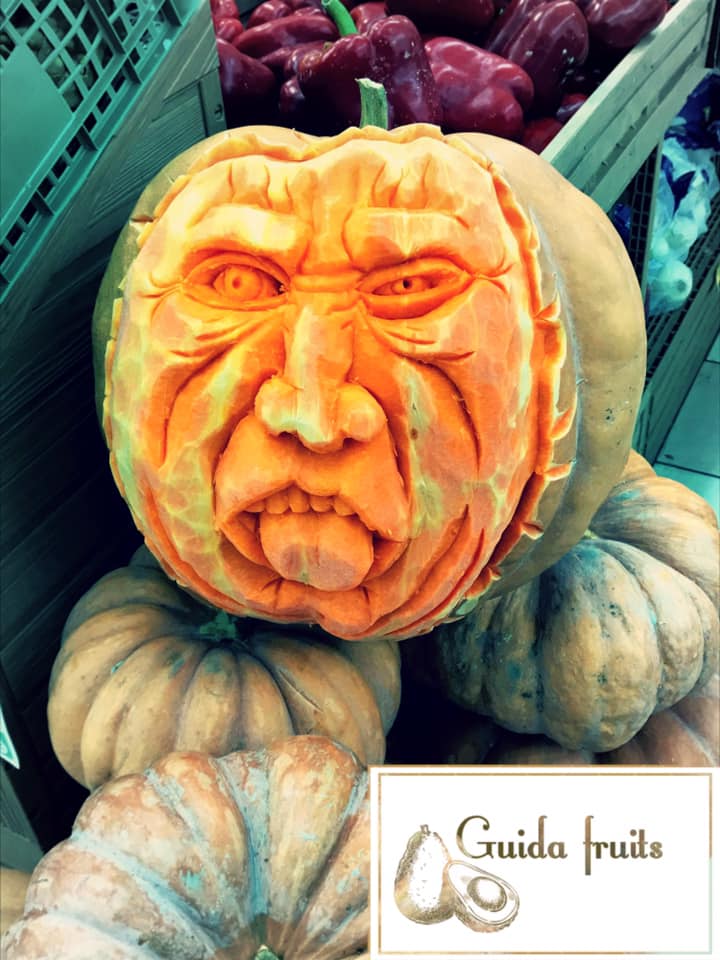 19 anni, di Maruggio, Giuseppe realizza sculture su frutta. Ecco due lavori ispirati ad Halloween e chiaramente realizzati utilizzando le zucche.