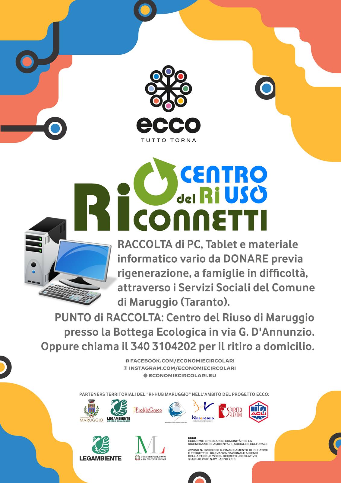 E’ stata denominata “RiConnetti” ed è una raccolta di computer, portatili e tablet (purché funzionanti) da donare, previa rigenerazione e sanificazione, a famiglie in difficoltà attraverso i Servizi Sociali del Comune di Maruggio.