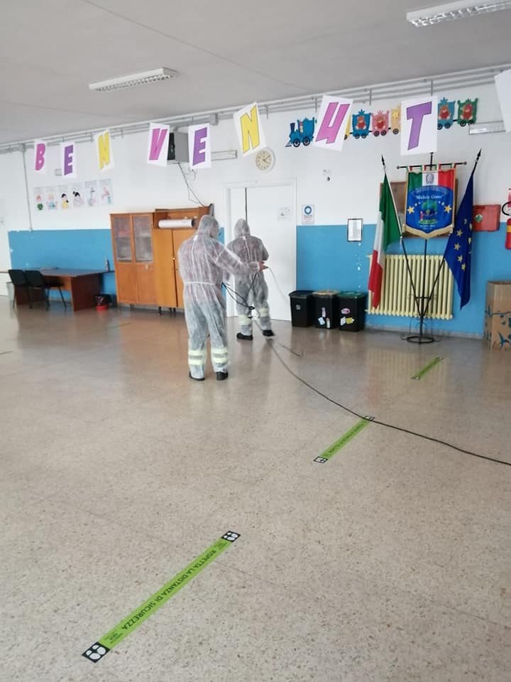 In un post, l’Amministrazione ringrazia «i Vigili del Fuoco del distaccamento di Manduria, in particolare il vigile coordinatore Filippo Scialpi che, in qualità di consigliere comunale, ha organizzato, con la collaborazione del C.R. Francesco Pesare e il comandante dirigente superiore dott. Patrizietti, la sanificazione dei plessi della scuola “Michele Greco”. Ieri si è iniziato proprio con il plesso “Michele Greco”; oggi è in corso di svolgimento presso il plesso “Marugy”, quindi proseguirà domani con il plesso “Poverella” e infine domenica con il plesso “Lombardo Radice” di Uggiano Montefusco.