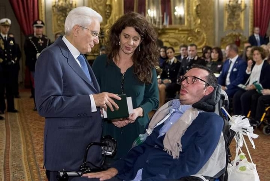 Insignito dal Presidente Mattarella del titolo di Cavaliere al Merito della Repubblica per la determinazione e la forza d’animo con cui ha portato a compimento il progetto «La Terrazza Tutti al mare!», il lido balenare modello di inclusione.