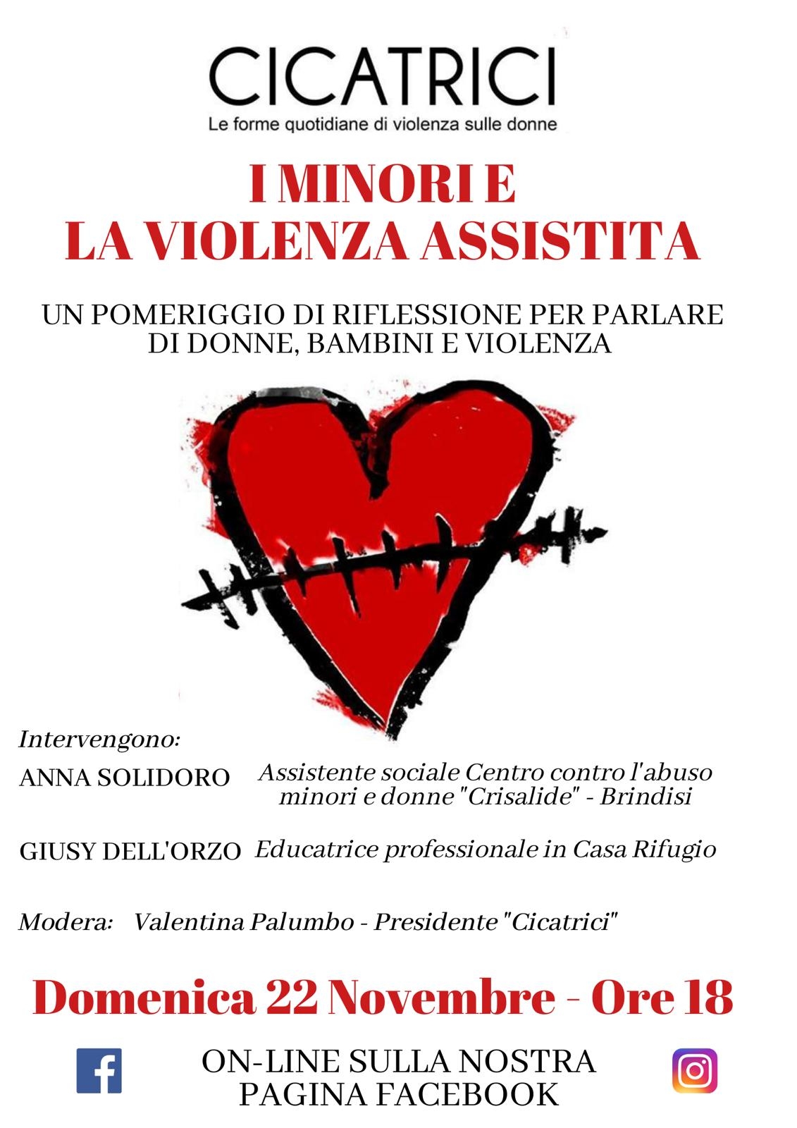 “I minori e la violenza assistita”. E’ questo il sottotitolo dell’appuntamento di riflessione “Cicatrici. Le forme quotidiane di violenza contro le donne” organizzato dalla associazione manduriana “CICATRICI”, in occasione della Giornata Internazionale contro la Violenza sulle Donne, che ricorre ogni anno il 25 novembre.