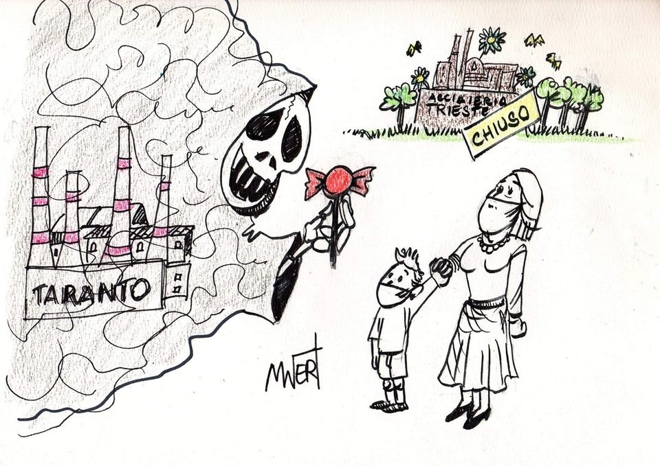 Lo Stato, già ritenuto colpevole dalla Corte Europea dei Diritti dell’Uomo, di non aver tutelato la salute e la vita dei tarantini e quindi condannato a porre rimedio alla situazione tuttora esistente, continua perseguire la strada della produzione d’acciaio altamente inquinante, mettendo sul piatto addirittura aiuti economici alla multinazionale, pur di non farla andare via, come da desiderio del premier Conte.
