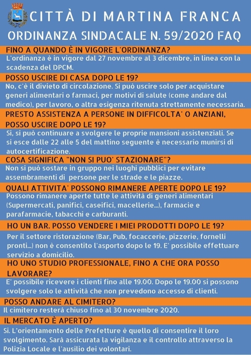 Il sindaco Franco Ancona, con ordinanza n. 59 del 26/11/2020, ha disposto quanto segue: