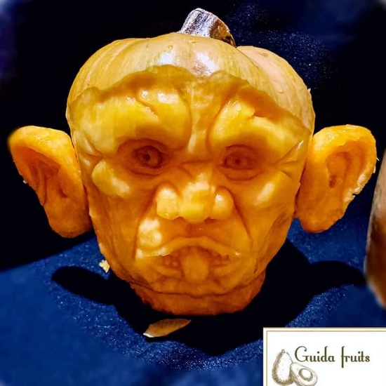 Ecco, nella foto, un’altra splendida scultura su zucca, realizzata, con l’arte dell’intaglio, dall’artista maruggese Giuseppe Guida. Un’altra testimonianza delle notevoli qualità artistiche acquisite dal giovanissimo Giuseppe Guida.