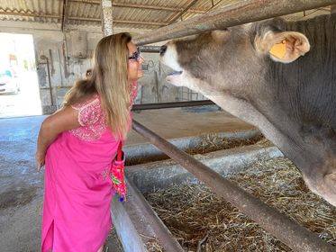Ora pesa 8 quintali (nella foto con Romina Power), ma non può più stare dove è: Azzurro Ionio non può permettersi (non ha mai potuto) una retta di pensione di 250 euro al mese, e, grazie all’appello di Romina Power, Casimiro ha trovato casa a nord di Roma, a Nerola, nella fattoria “Capra Libera Tutti”, che accoglie animali sopravvissuti al macello.